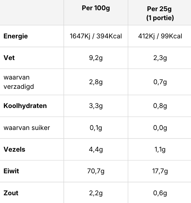 Eine Standardportion von etwa 25 g liefert ungefähr 18 g Protein , was einem Proteingehalt von 71 % entspricht. Damit ist es eine effiziente Möglichkeit, Ihren täglichen Proteinbedarf zu decken.